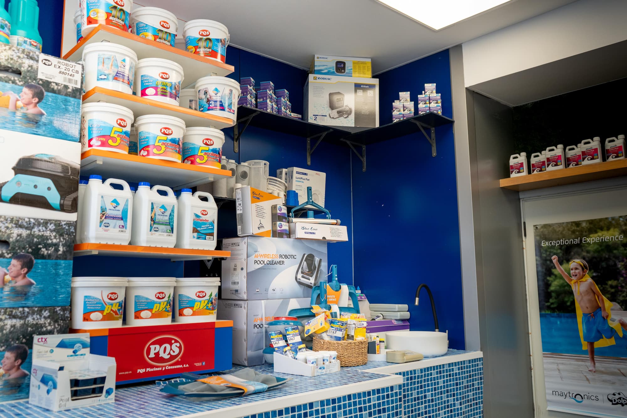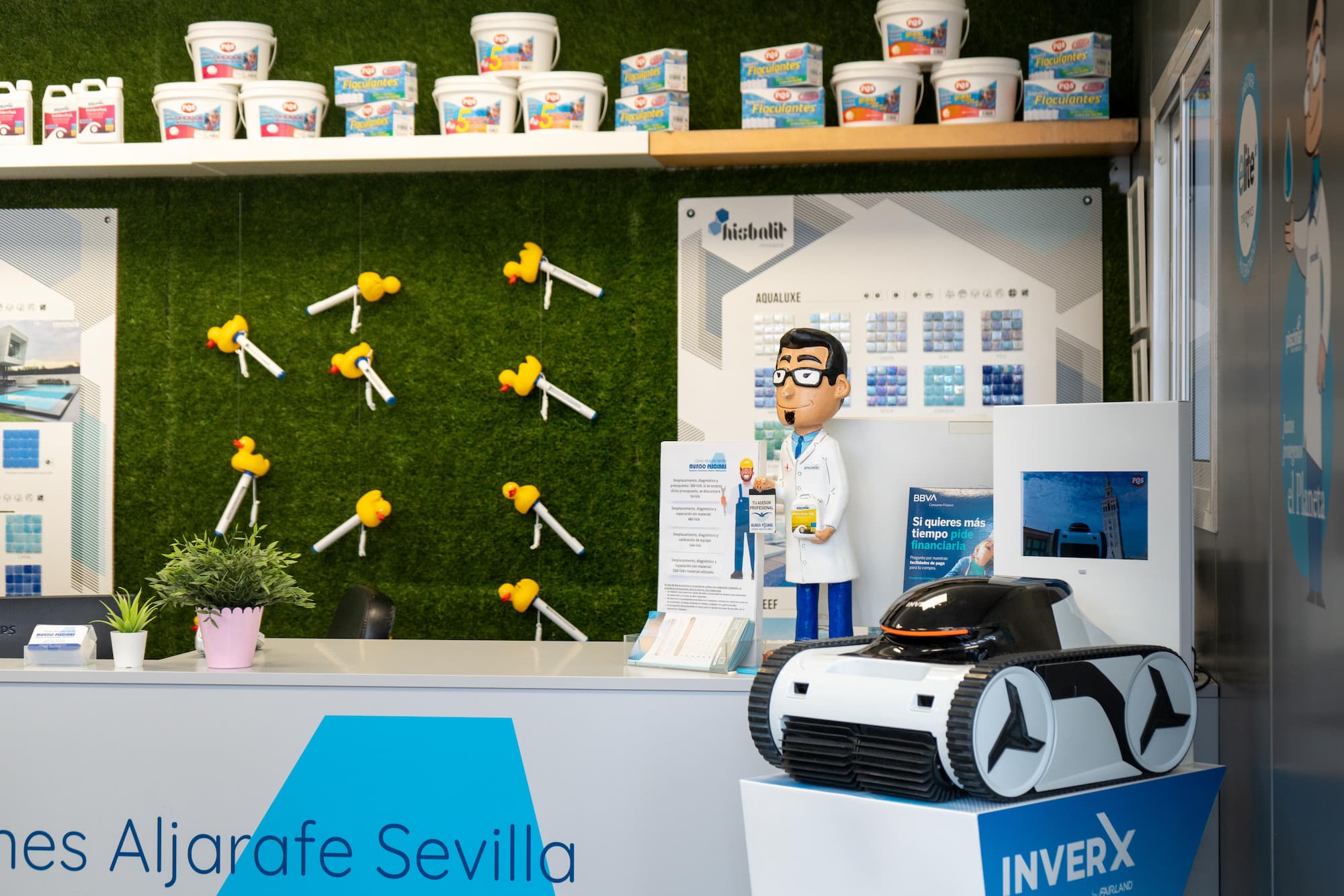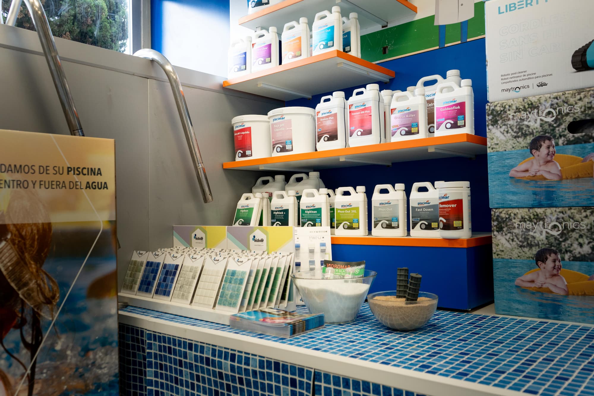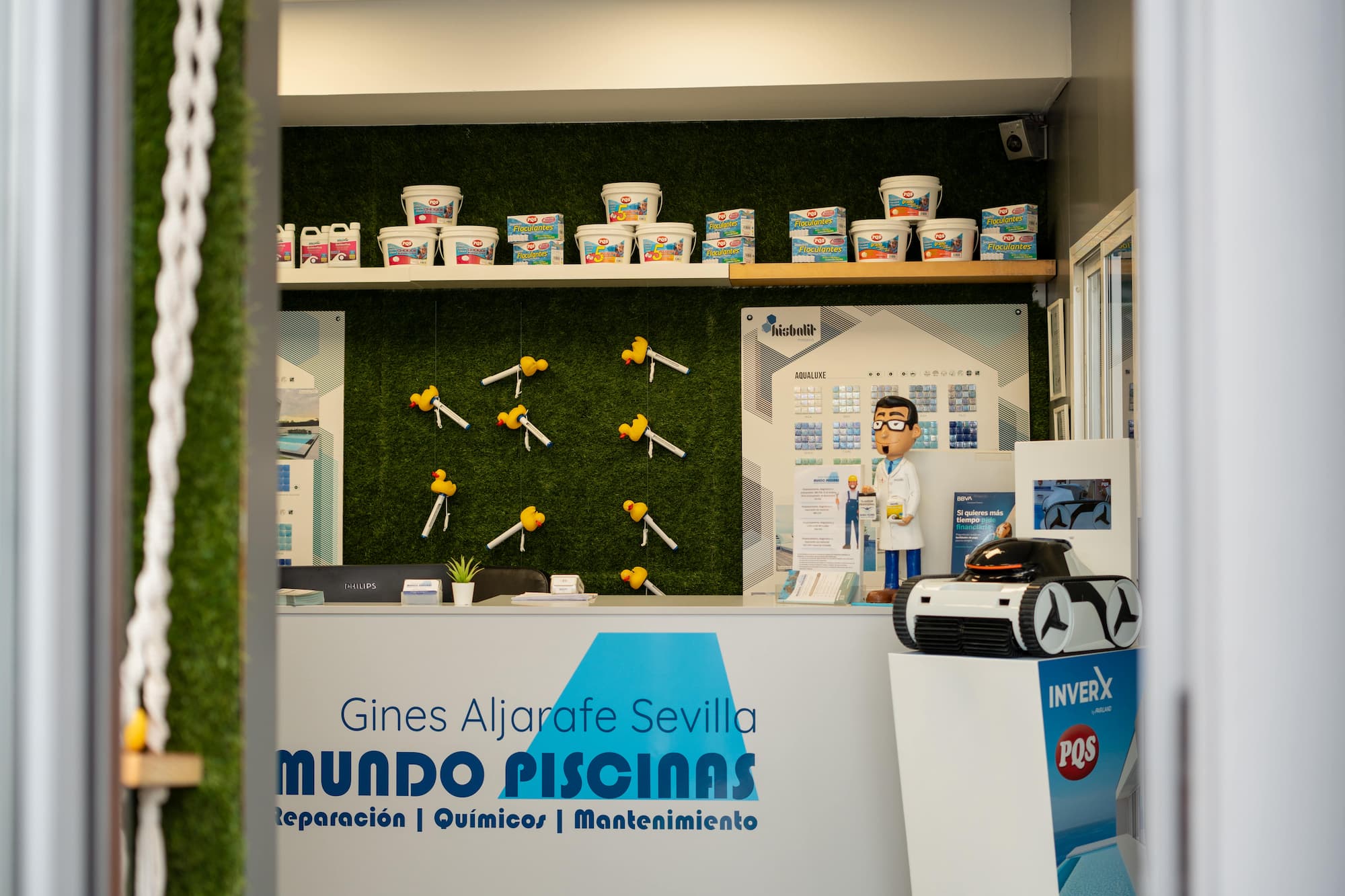 Con tienda física en Gines, en el corazón del Aljarafe, comercializamos todo tipo de productos, accesorios, herramientas y material para el mantenimiento de las piscinas.