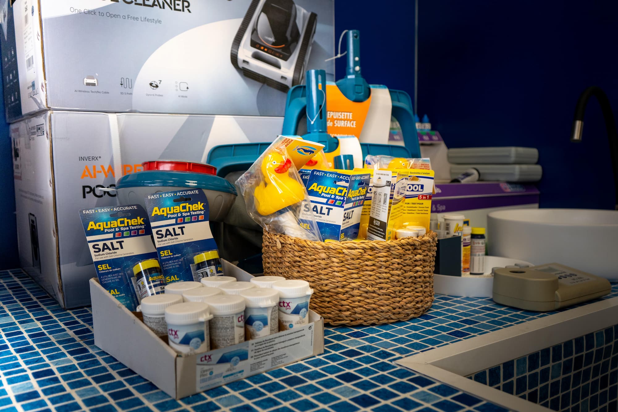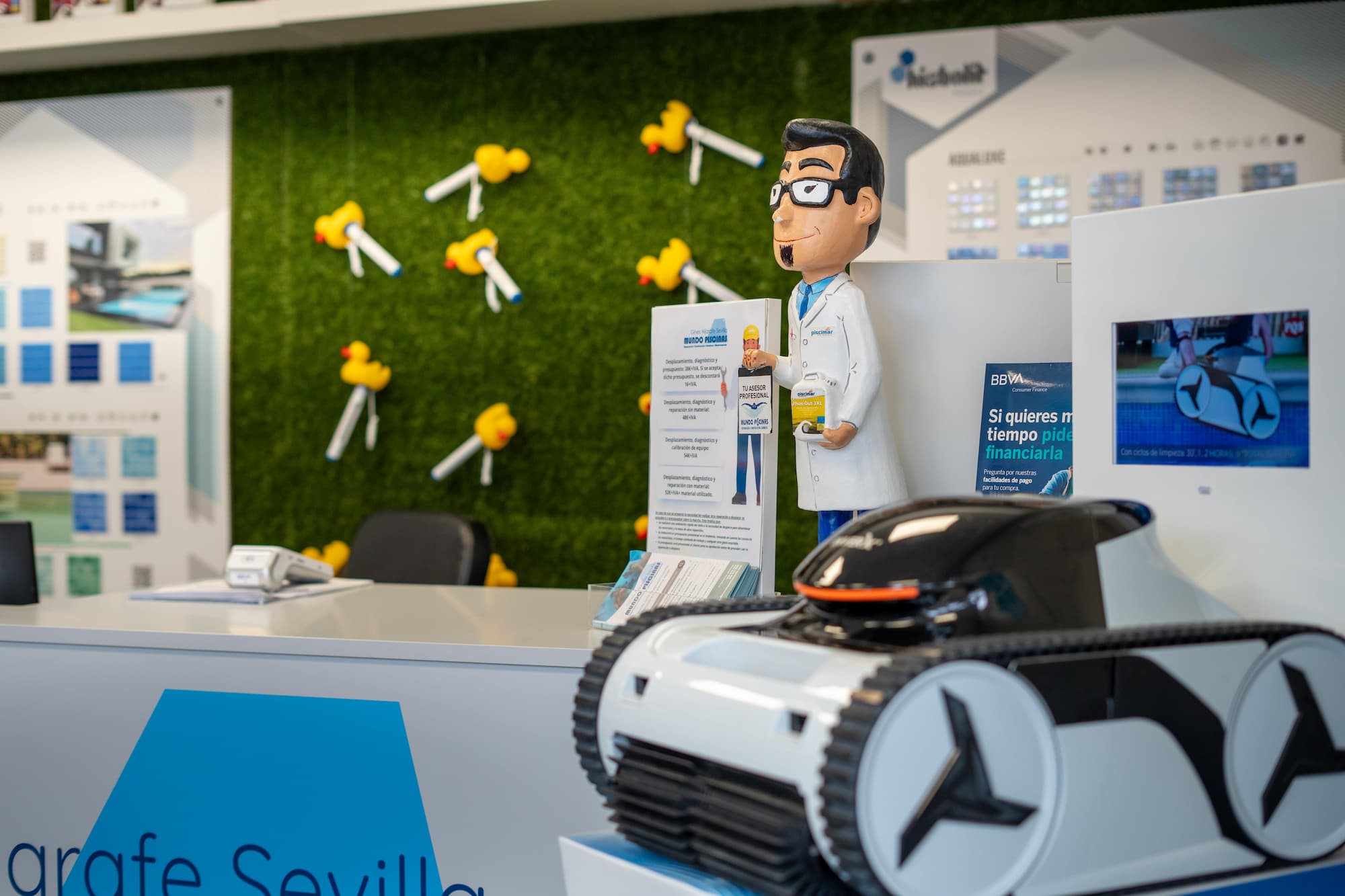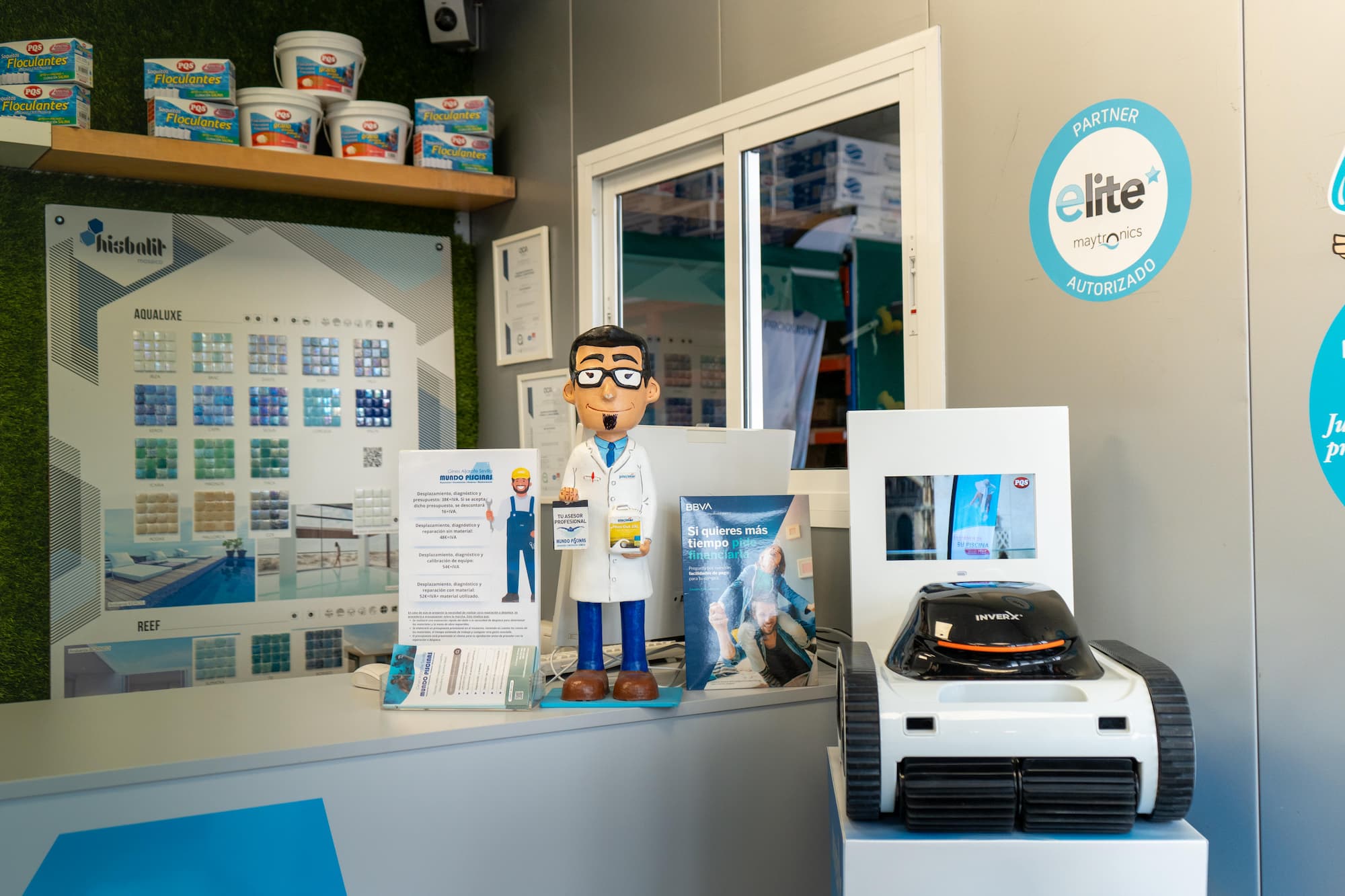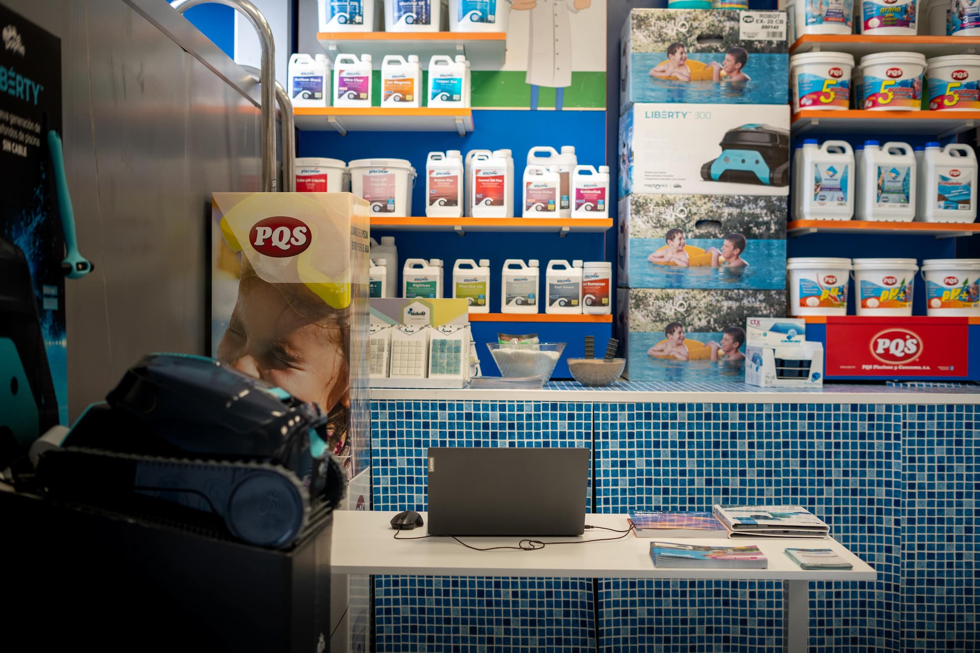 Con tienda física en Gines, en el corazón del Aljarafe, comercializamos todo tipo de productos, accesorios, herramientas y material para el mantenimiento de las piscinas.